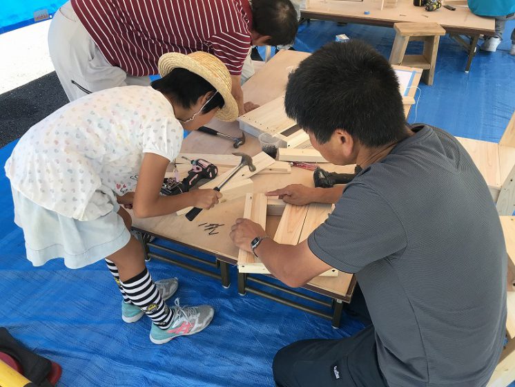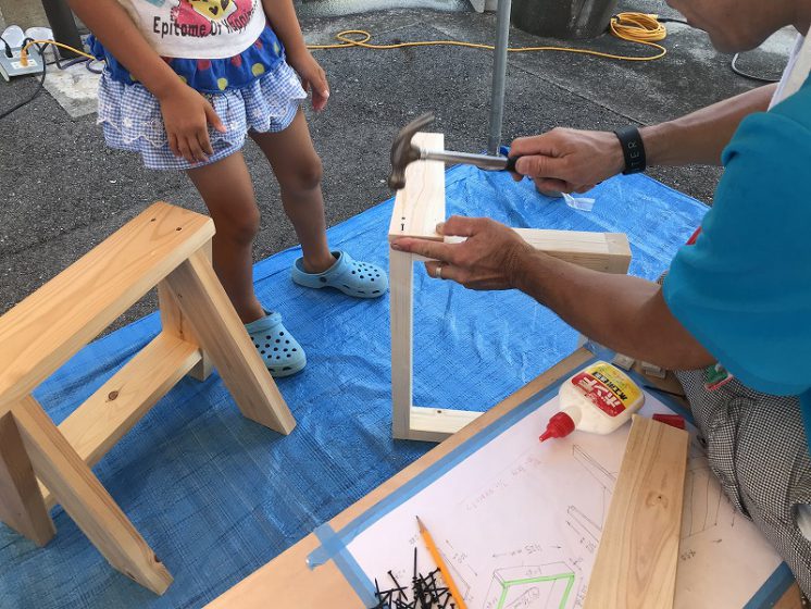 夏休みの宿題におススメの木工。汗をかきながらお疲れ様でした…。