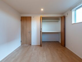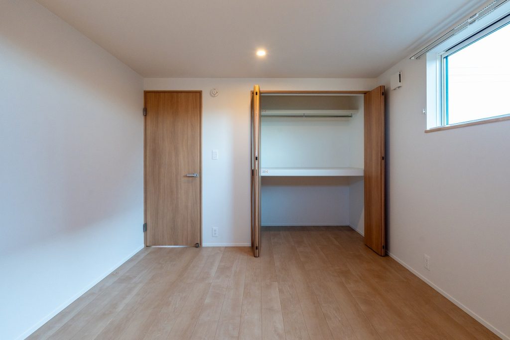 2階には7帖の主寝室と大容量ウォークインクローゼット、さらに5.5帖の子ども部屋を2室配置し、成長に合わせて使いやすい間取りに。