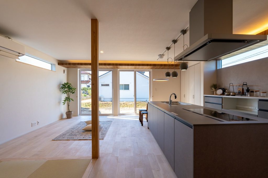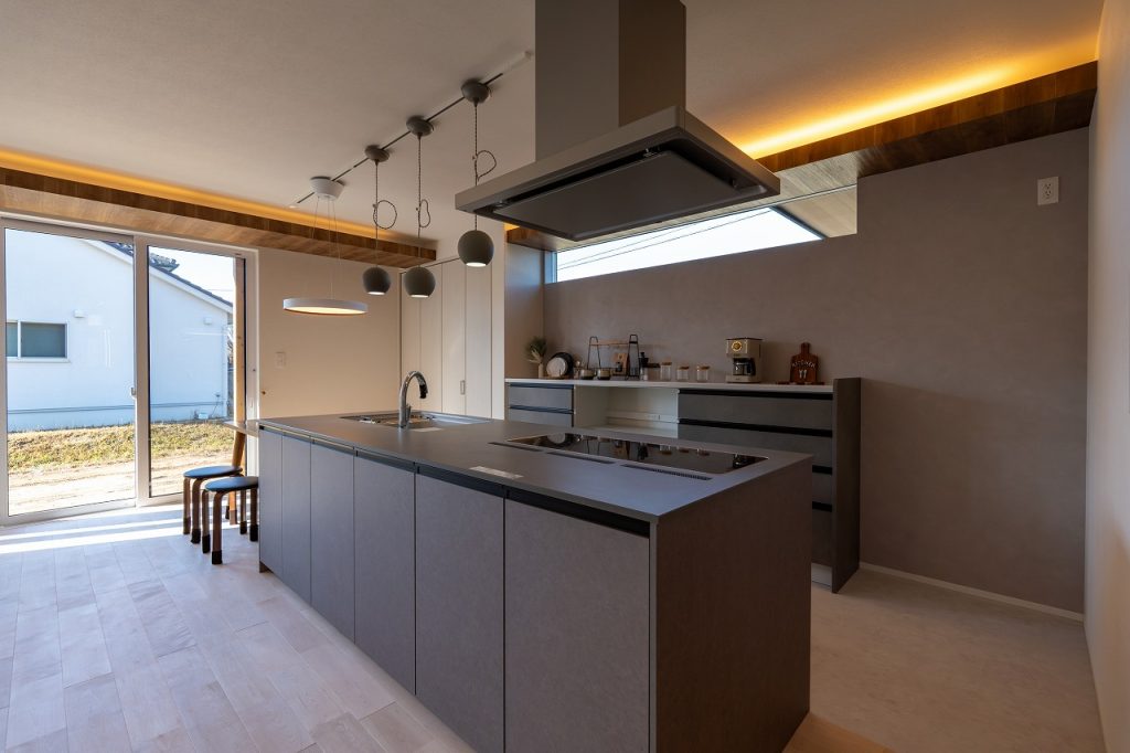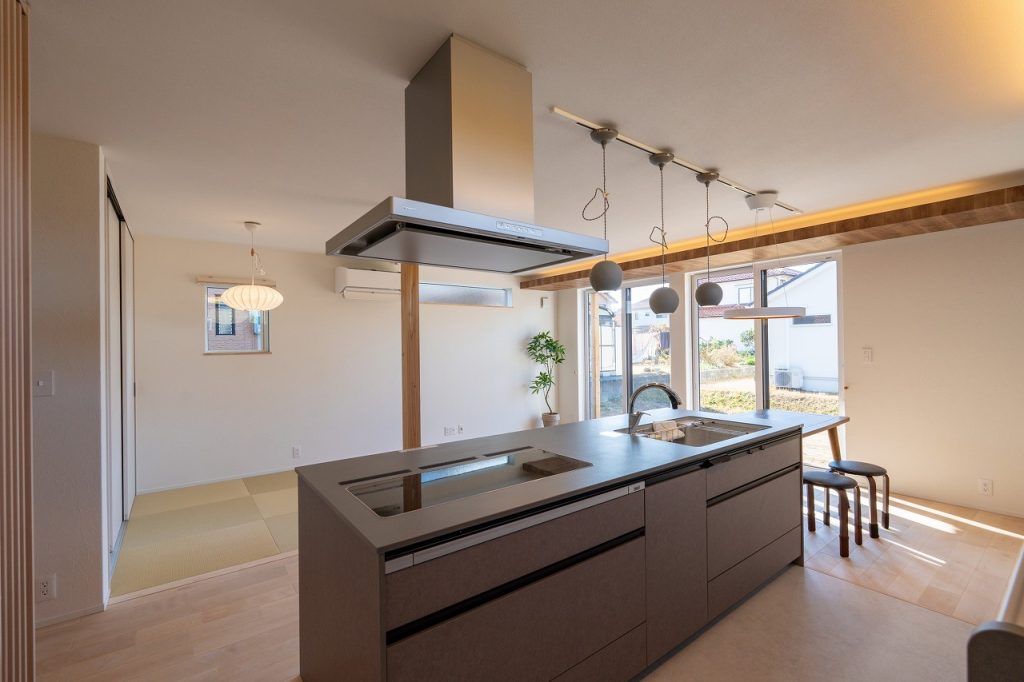19帖の開放感あふれるLDKにはアイランドキッチンを採用。