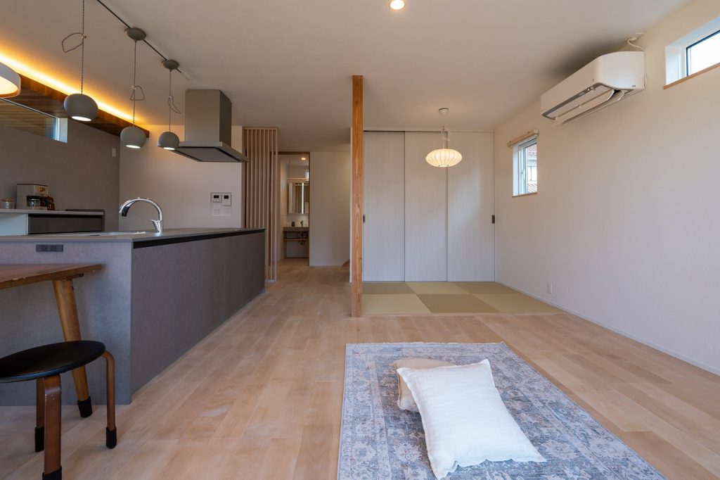 また、隣接するタタミスペースは、家事の合間のひと休みやお子さまの遊び場など、多目的に使える便利な空間です。