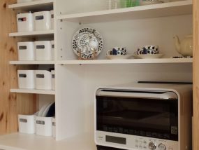 下部はアウトサイドストッカーとして自転車やタイヤを置いたりBBQセットも。