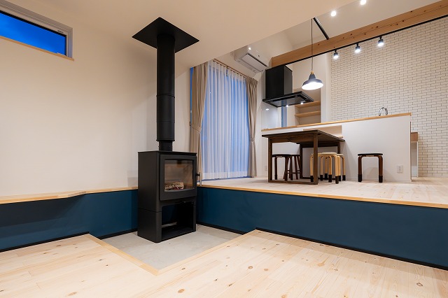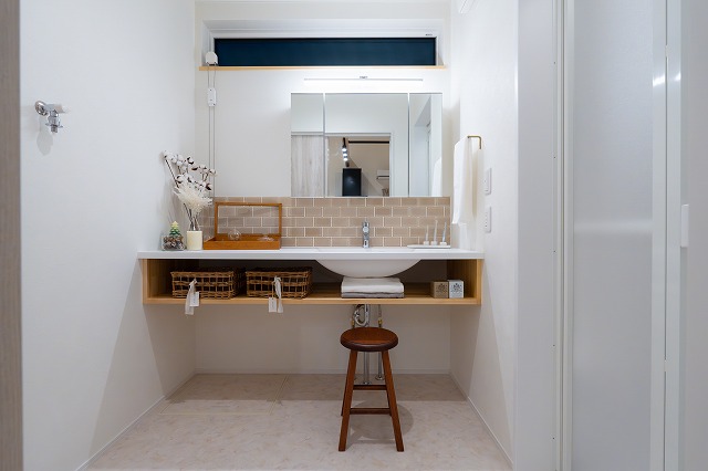 スタイリッシュな外観に、どこか可愛らしさを感じるお家。 玄関には座って靴の脱ぎ履きができるベンチを設け、 リビングには畳スペースと吹き抜けを…